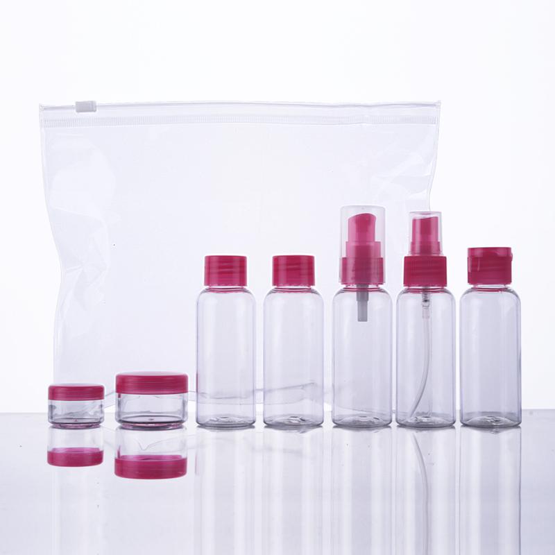 7 in 1: Disc Cap bottle, Flip Cap bottle, Spray bottle, Cream bottle, Cleaning Oil Bottle, 2pcs of mini Jar.